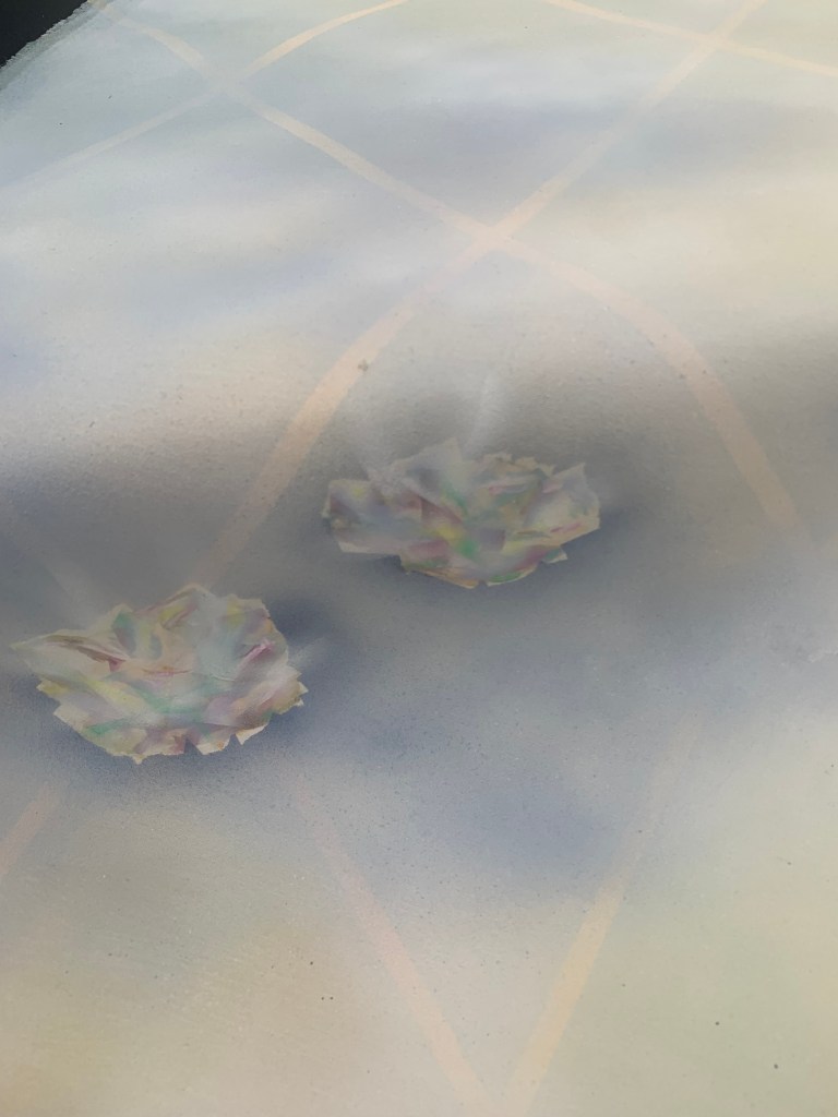 Salt crystallization, cell phone, Mylar paper, acrylic on canvas.
