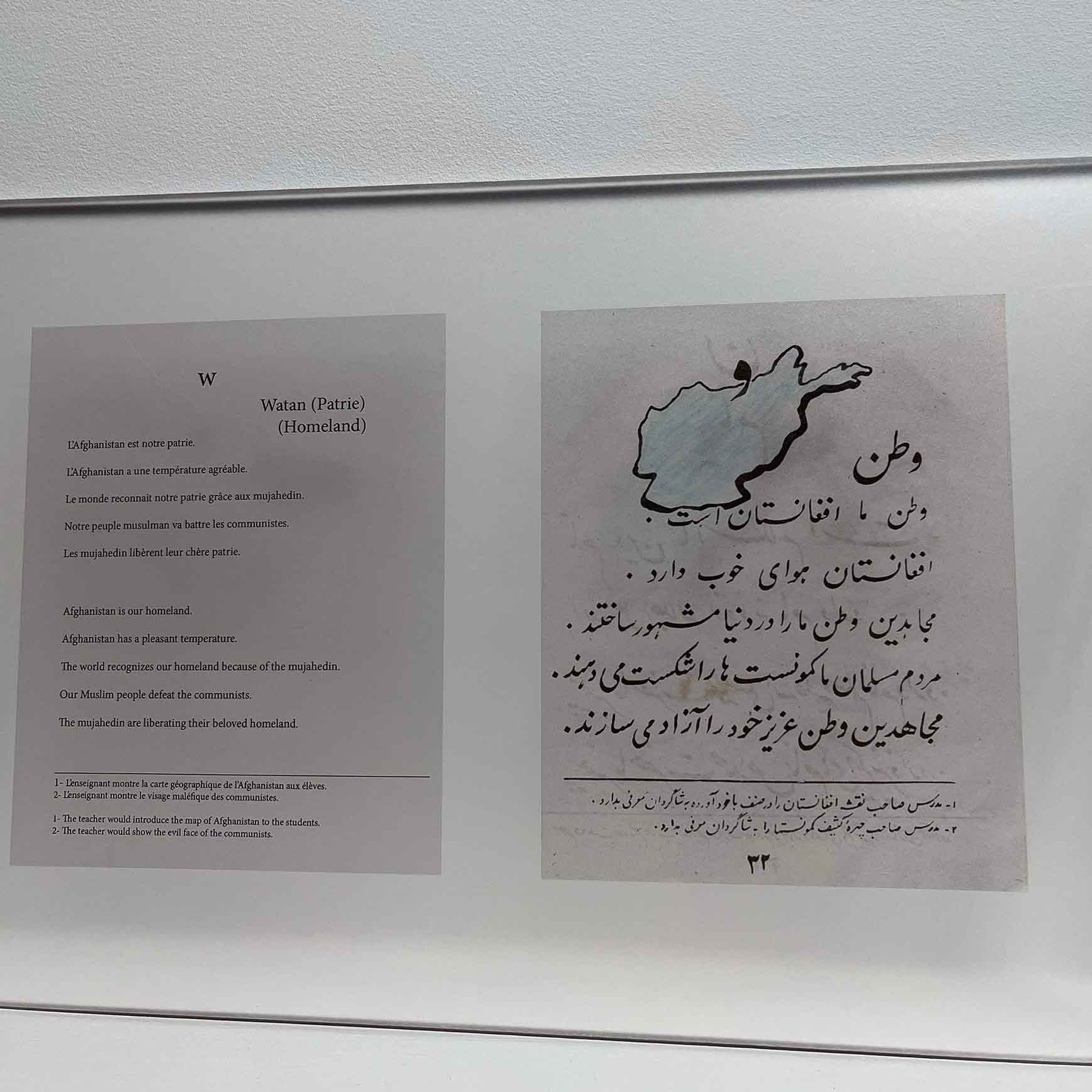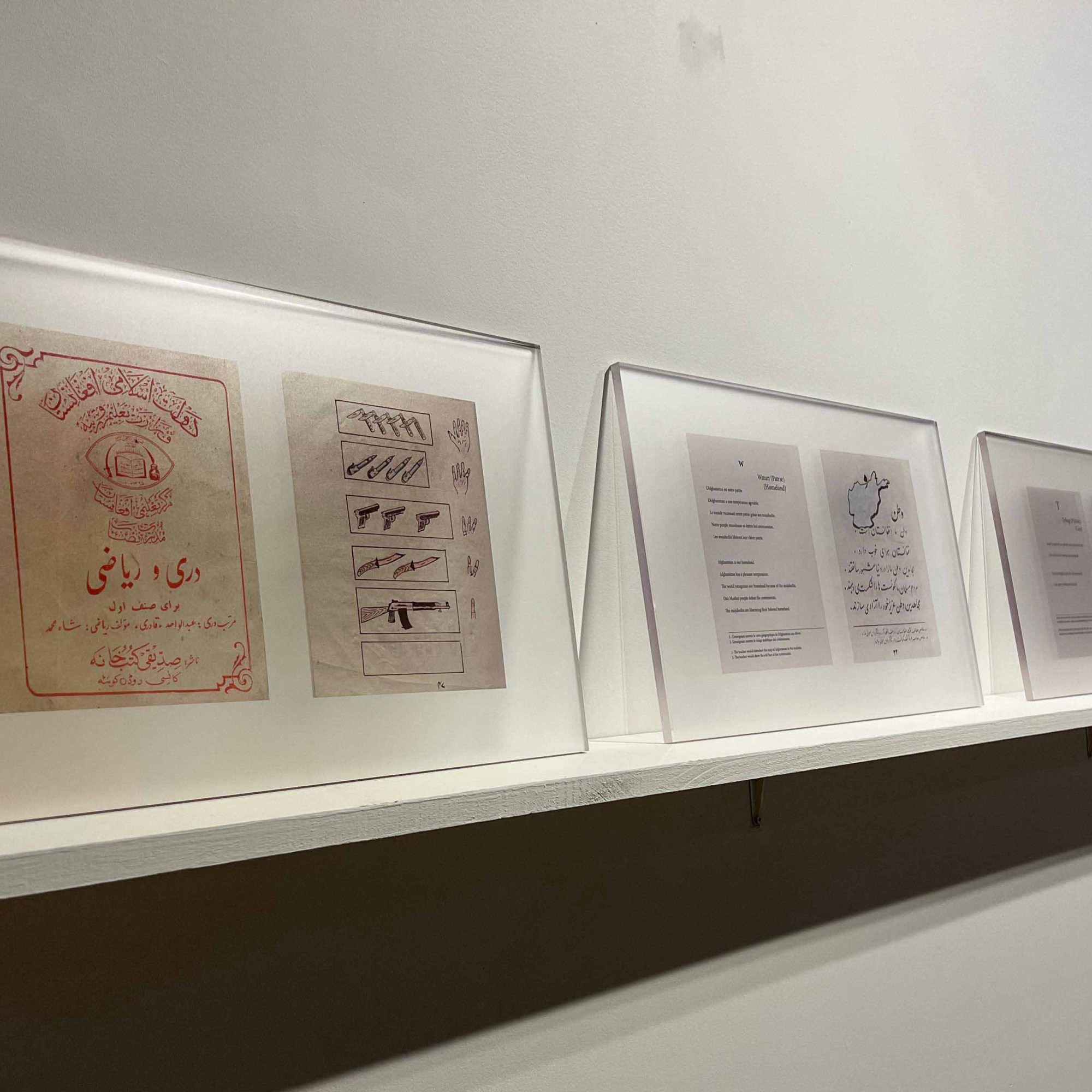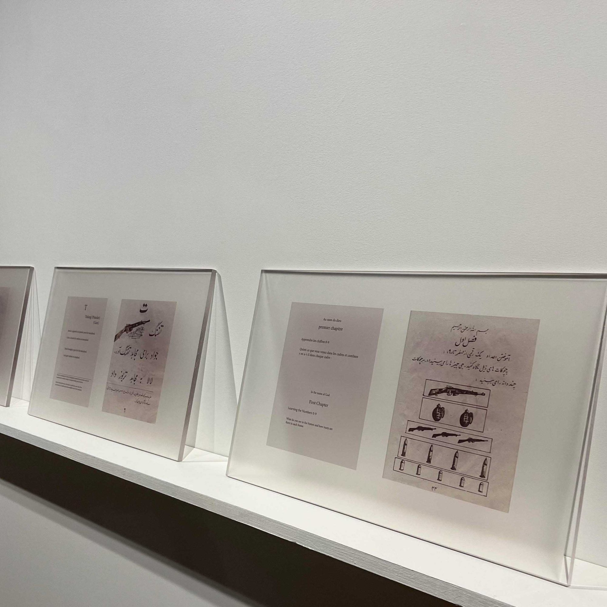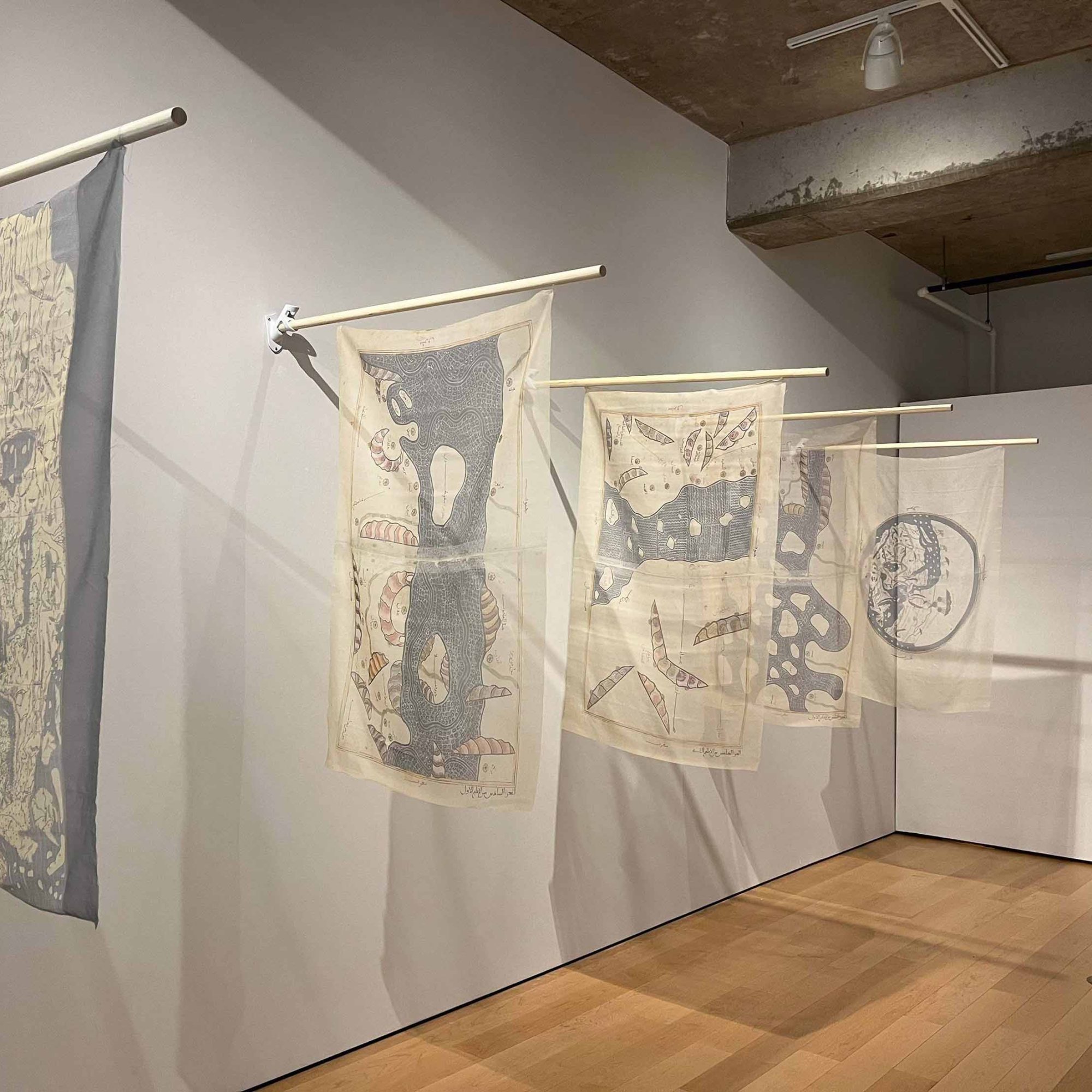(un)inhabited). This body of work focuses on processes and activities that formed our so-called contemporary landscape. It consists of three parts. The main artwork is an installation consisting of two large, suspended paintings. Some areas of the installation are intentionally hidden or less accessible for the visitors. Also, I have presented some reproduction of El Idrisi’s 12.c maps in the form of flags. Without these maps it would be difficult to imagine the colonial capitalist world in the coming centuries. The maps and book pages are presented as two examples of western-led activities which have major and long-term impacts on the socio-political and natural landscape. Acrylic Paint on Canvas. Digital Print on plexiglass. Digital Print on fabric. 2022. Centre Auger. Quebec. Canada. Photo: Courtesy of the artist.