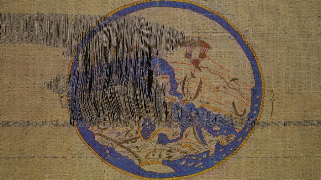 « Tabula Rogeriana » (1154) est la première carte géographique détaillée et scientifique du monde prémoderne. Al-Idrisi (1100-1165), géographe originaire de l’Afrique du Nord, a été mandaté par le roi Roger II pour voyager en Europe afin de produire des cartes. Durant son séjour en Europe, il a illustré plusieurs cartes que les Européens vont utiliser pour leurs conquêtes et pour s’enrichir grâce aux routes commerciales. Au fur et à mesure, les frontières, à caractère politique et militaire, sont apparues sur les cartes géographiques. Ces cartes ont aidé les Européens à imaginer et transformer le paysage du monde au-delà de leurs territoires du 12e siècle. Sans l’instrumentalisation des cartes d’Al-Idrisi, il serait difficile d’imaginer le monde colonial, capitaliste et impérialiste qui s’est construit dans les siècles suivants. La méthode scientifique rigoureuse et les calculs précis employés pour créer ces cartes sont au fondement des mathématiques modernes, de la science de l’informatique et de l’algorithme.